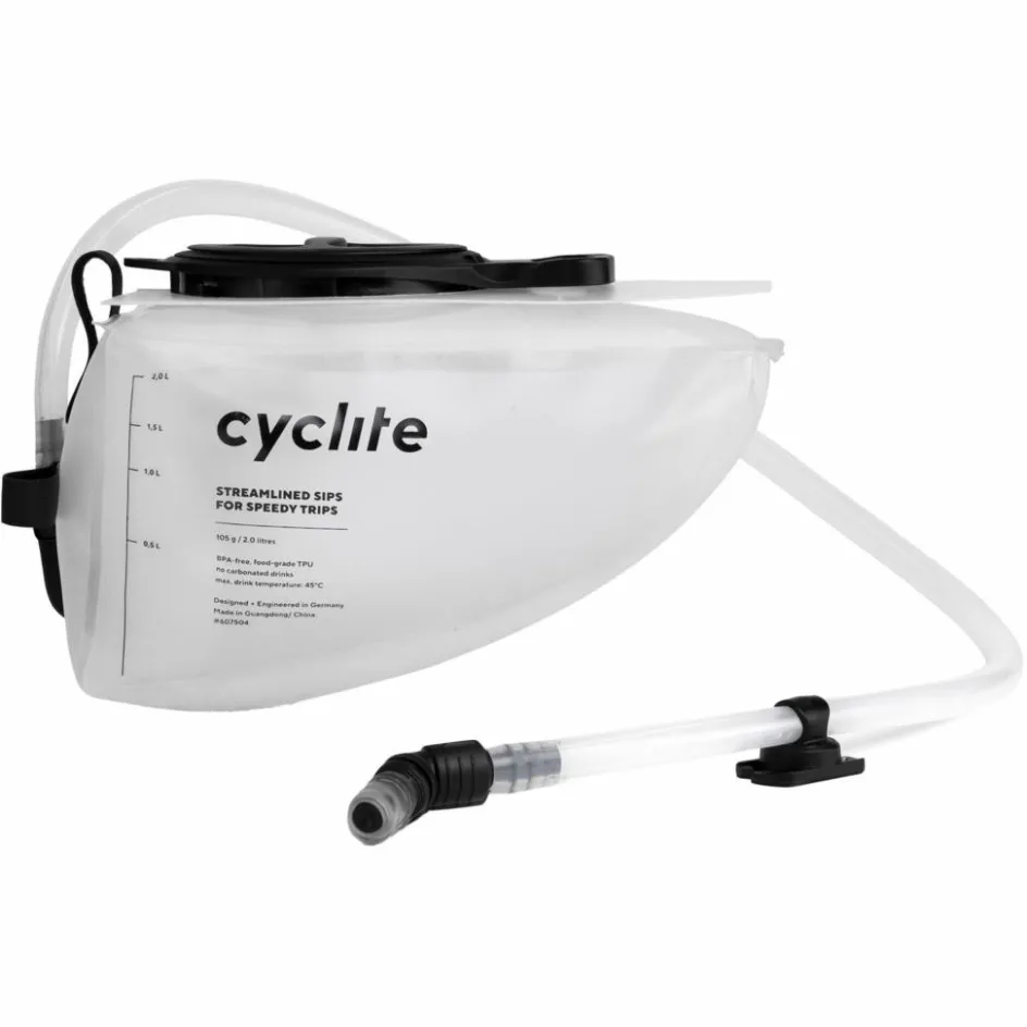Die Form ist so gewählt, dass sich die Blase in die Tasche schmiegt und trotz des üppigen Fassungsvolumen von zwei Litern oberhalb noch Platz für dein Equipment lässt. Der Schlauch wird durch die Öffnung an der Rückseite der Aero Bag geführt. Du befestigst ihn so am Lenker oder an den Aufliegern, dass du ohne Aufwand während der Fahrt daraus trinken kannst.