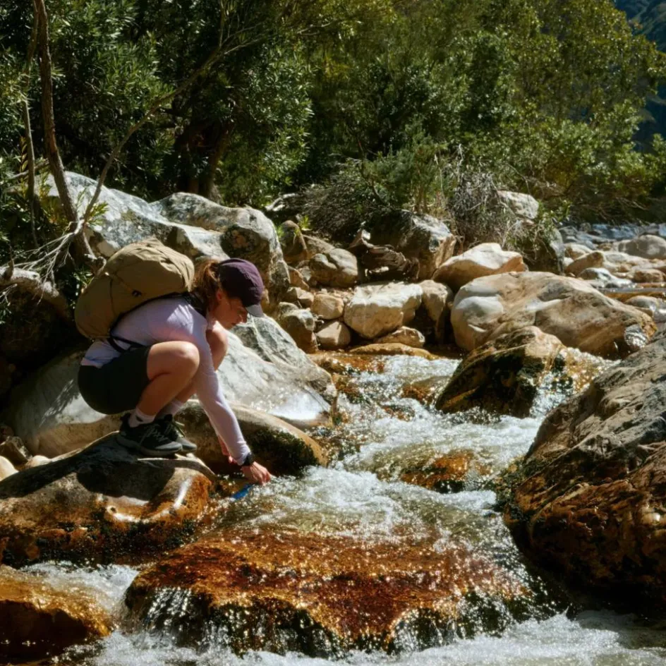Für eine optimale Gewichtsverteilung kannst du deinen Trinkwasservorrat mithilfe zweier Softflasks (optional erhältlich) vorne auf den Schultergurten transportieren. So musst du den Rucksack zum Trinken auch nicht absetzen oder stehenbleiben – perfekt, wenn du beim Wandern gerne Strecke machst. Auch an deine Trekkingstöcke kommst du problemlos unterwegs, denn mithilfe der Fixierungen an den Schultergurten sind diese immer griffbereit.