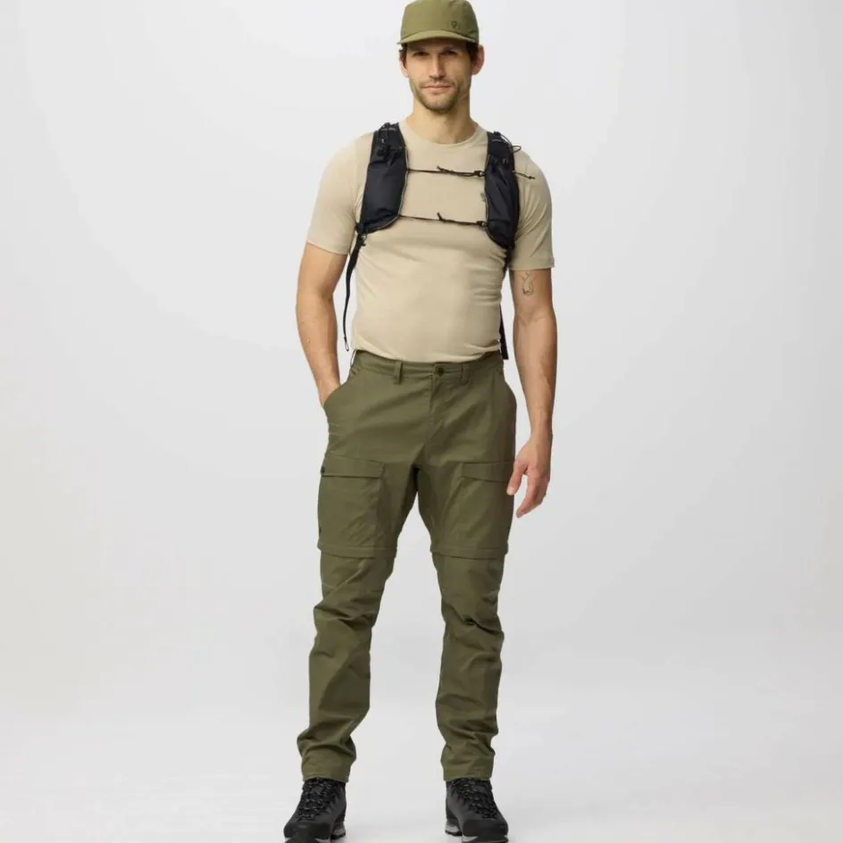Die Abisko Hybrid Trail Trousers Zip-Off M ist die ideale Synthese aus klassischer Fjällräven G-1000 Trekkinghose technischer Softshellhose – in dieser Version nun auch mit abzippbaren Hosenbeinen.
