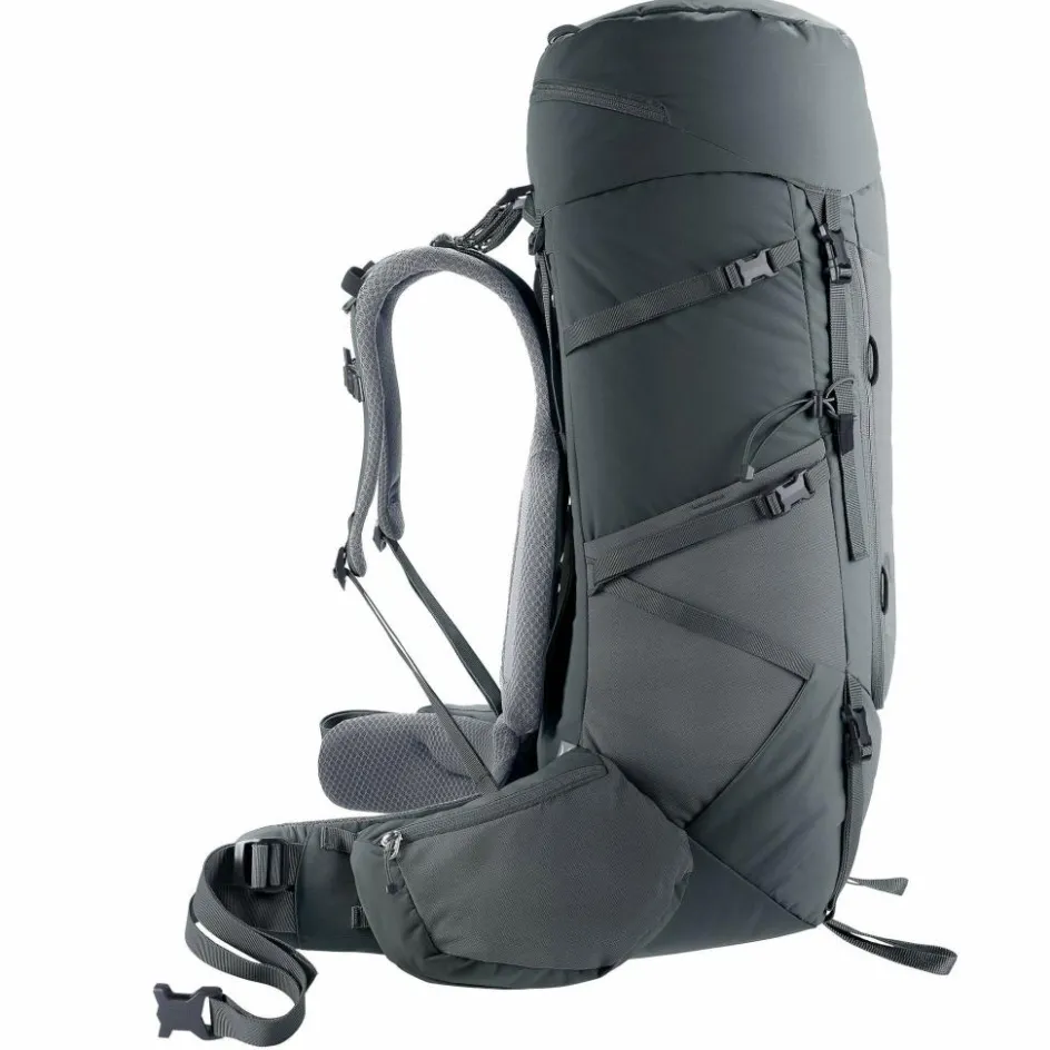 Der Trekkingrucksack wartet mit allen Fächern auf, die du auf Mehrtagestouren brauchst, um deine Ausrüstung übersichtlich und griffbereit zu sortieren. Das Hauptfach lässt sich klassisch von oben und über einen großen Frontzugang öffnen, sodass du jederzeit problemlos an deine komplette Ausrüstung kommst. Dank der Schlaufen auf der Front kannst du Zelt oder Isomatte einfach außen am Rucksack befestigen und so einiges an Platz im Hauptfach sparen. Den Aircontact Core musst du zum Trinken übrigens nicht absetzen: Mithilfe der Flaschenhalterung auf dem rechten Hüftgurt kannst du deinen Durst auch mit geschultertem Rucksack unkompliziert löschen.