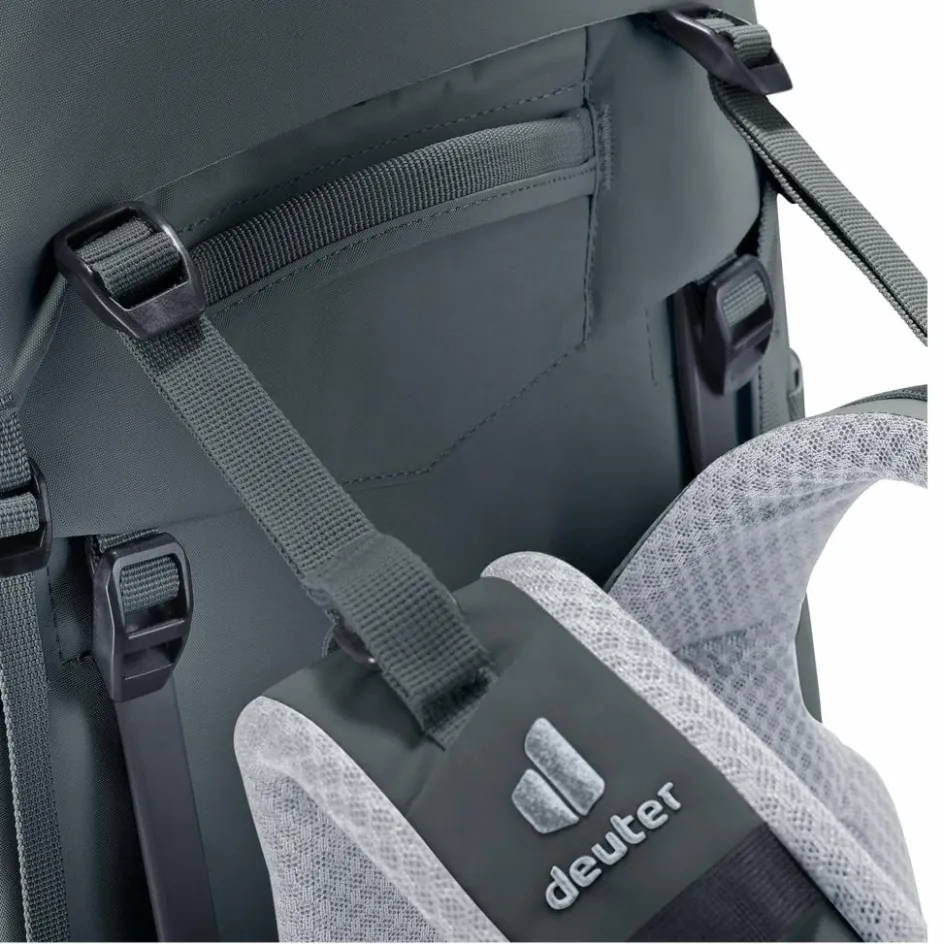 Wie von Deuter gewohnt, steht auch beim neuen Aircontact Core der Tragekomfort an oberster Stelle. Dafür sorgen nicht zuletzt zwei robuste Aluminiumstreben, die das Gewicht dank der Y-förmigen Ausrichtung optimal auf die Hüften übertragen. Damit dein Rücken selbst auf schweißtreibenden Touren bestes Klima genießt, ist das Tragesystem mit großen Belüftungskanälen und atmungsaktivem Mesh ausgestattet. Und für die optimale Passform lässt dich die Rückenlänge dank Deuters neuem VariClick-System in nur wenigen Sekunden auf deine Größe anpassen.