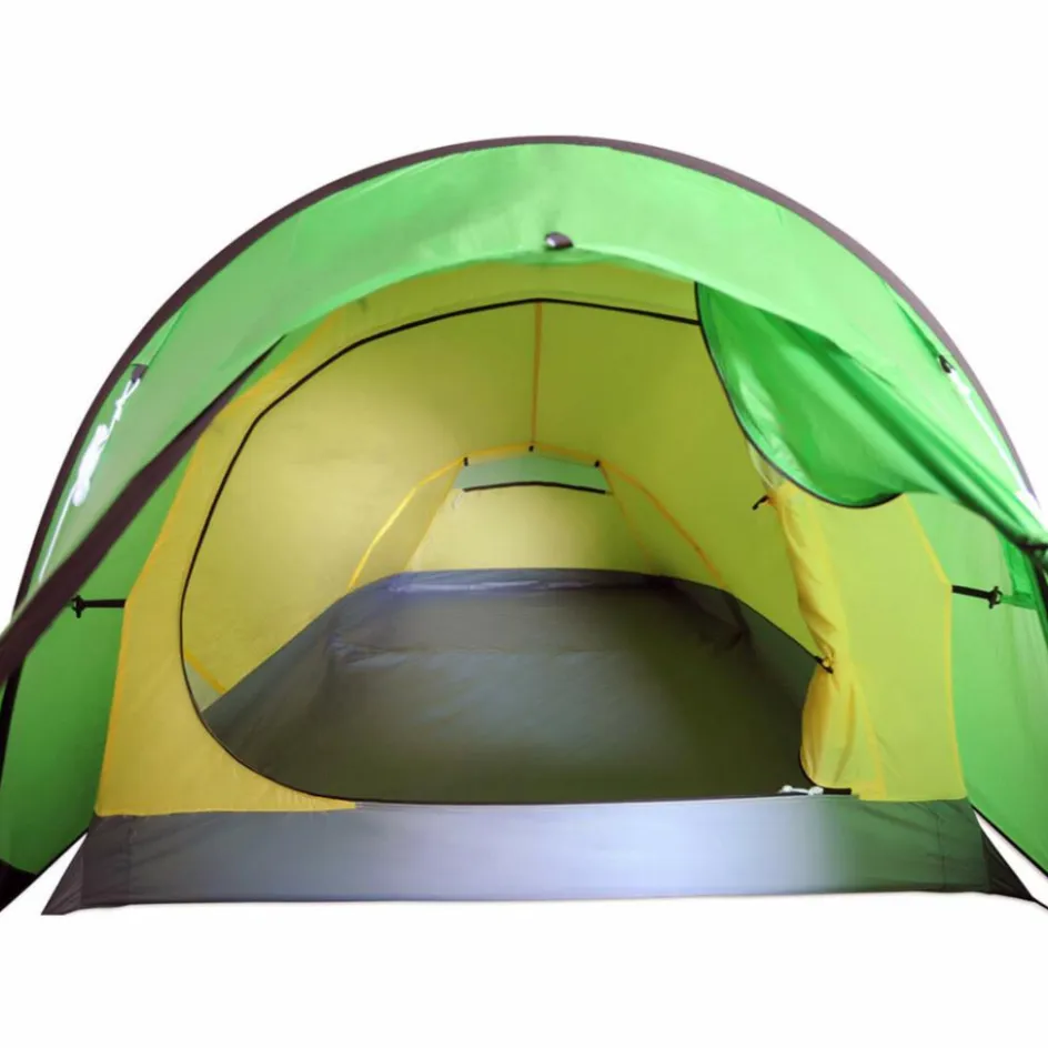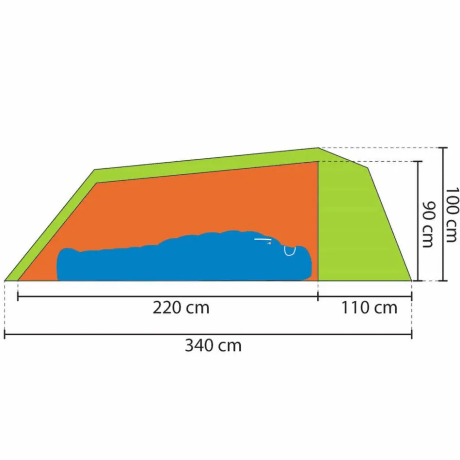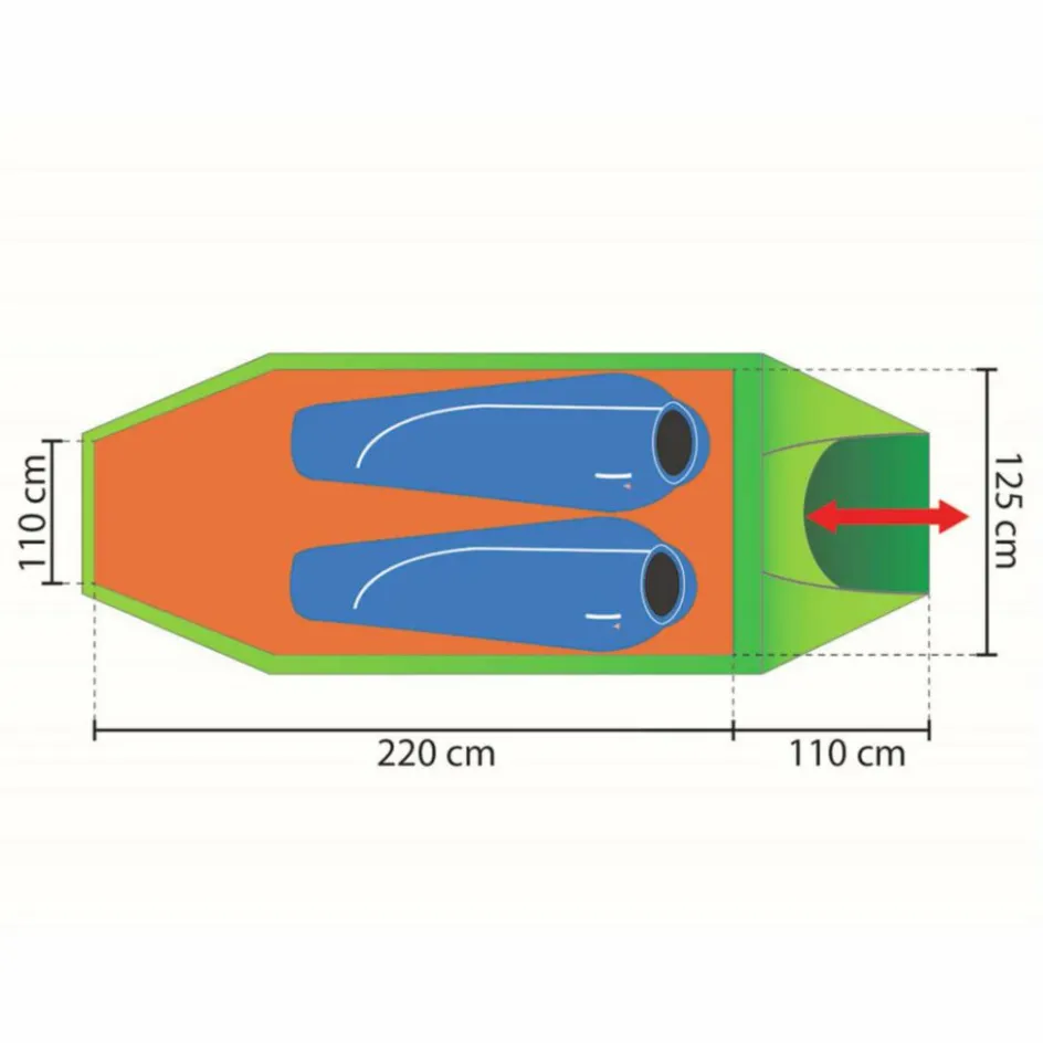 Das Tunnelzelt lässt sich dank der beiden farbcodierten Gestängebögen schnell und unkompliziert aufbauen. Durch die gekoppelte Konstruktion aus Außen- und Innenzelt bleibt der Innenraum trocken, auch wenn du das Zelt bei Regen aufstellst.