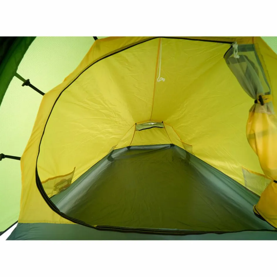 Du betrittst das Antao II Light UL über den breiten Fronteingang, der Platz für Schuhe, Ausrüstungsteile oder Tourenrucksäcke bietet. Im Eingangsbereich ist außerdem ein großer Lüfter integriert, der für ausreichende Frischluftzufuhr sorgt, wenn du das Zelt dem Wind zugewandt aufstellst.