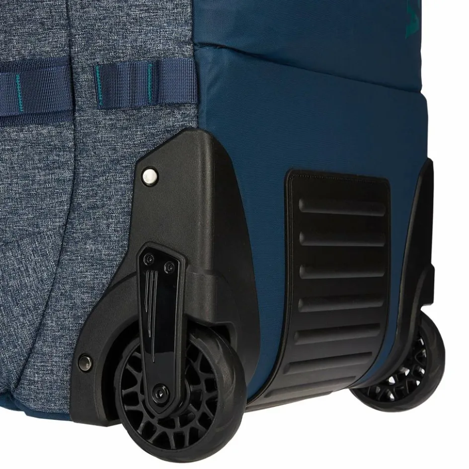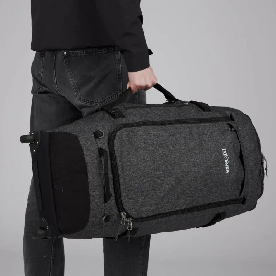 Bei 80 Litern Fassungsvermögen kann der Duffle Roller schnell mal schwer bepackt werden. Aber keine Sorge, du musst das Gewicht nicht schultern, sondern kannst die Reisetasche einfach hinter dir herziehen. Die geländegängigen Rollen gleiten leise und der Griff zum Ziehen ist großzügig geschnitten.