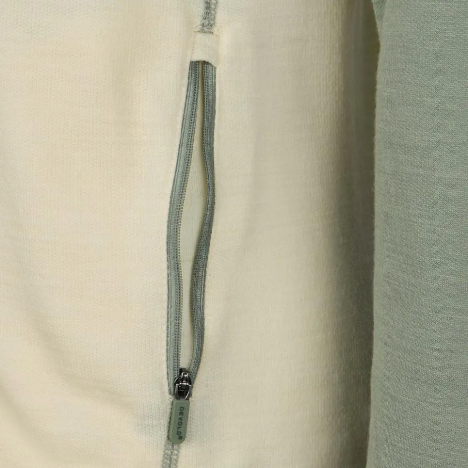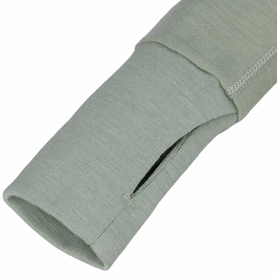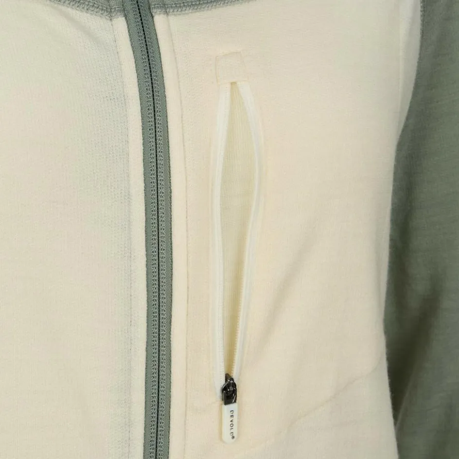 Von innen sorgt reine Merinowolle für ein sehr angenehmes Tragegefühl. Mit einer Materialstärke von 210 g/m² bietet dir die Wolljacke einen guten Wärmerückhalt. Die temperaturregulierende Wolle versorgt dich gleichzeitig mit ausgewogenem Trageklima, sodass du nicht überhitzt. Obendrein nimmt die Naturfaser viel Feuchtigkeit auf und ist von Natur aus geruchshemmend. Ideal für längere Wander- und Trekkingtouren.