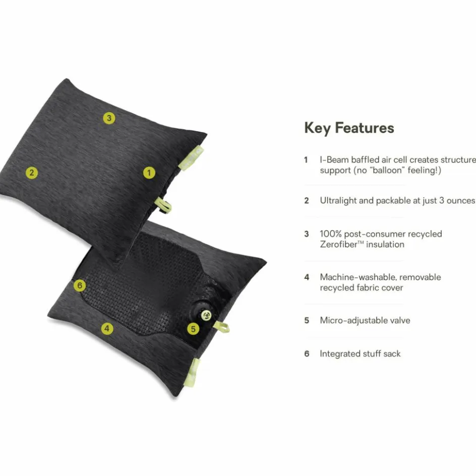 Das Fillo Elite ist ein ultraleichtes (80 g) und klein verpackbares (10 x 8 cm) Reisekissen mit Luftkern. Für mehr Schlafkomfort ist eine Einlage aus PrimaLoft eingearbeitet.
