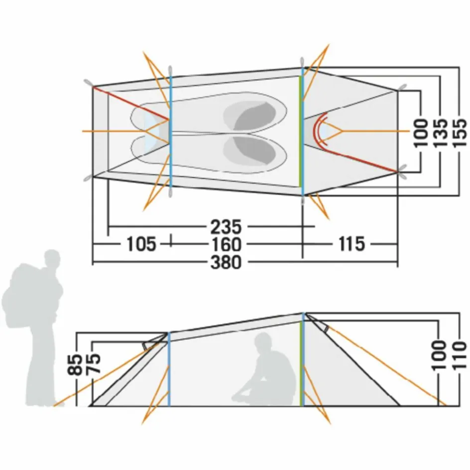 Das 2-Personen-Zelt Gargia 2 ist ein sehr leichtes Tunnelzelt mit besonderen Komfort-Features: In dem 2,35 Meter langen Innenzelt können sich auch großgewachsene Menschen bequem ausstrecken. Das Zelt besitzt einen Frontzugang mit einer Apsis für das Gepäck, Reißverschluss-Zugänge auf beiden Seiten und Lüfter sorgen für optimale Belüftungs- und Trocknungsmöglichkeiten.
