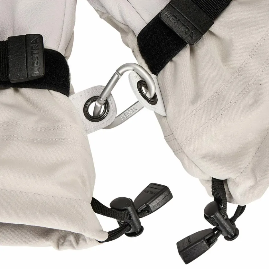 Die Handschuhe bestehen aus einem Außen- und einem herausnehmbaren Innenhandschuh. Um die Hände vor Schnee und Sturm schützen, ist das Obermaterial der Außenhandschuhe der Handschuhe mit Hestras Triton ausgestattet, einem dreilagigen Polyamidgewebe, das wind- und wasserdicht und gleichzeitig atmungsaktiv ist. An den Handinnenflächen sorgt geschmeidiges Ziegenleder für festen Halt am Skistock oder Eispickel. Die herausnehmbaren Innenhandschuhe sind komplett aus schnelltrocknendem Polyester gearbeitet und bieten viel Wärme bei geringem Gewicht.