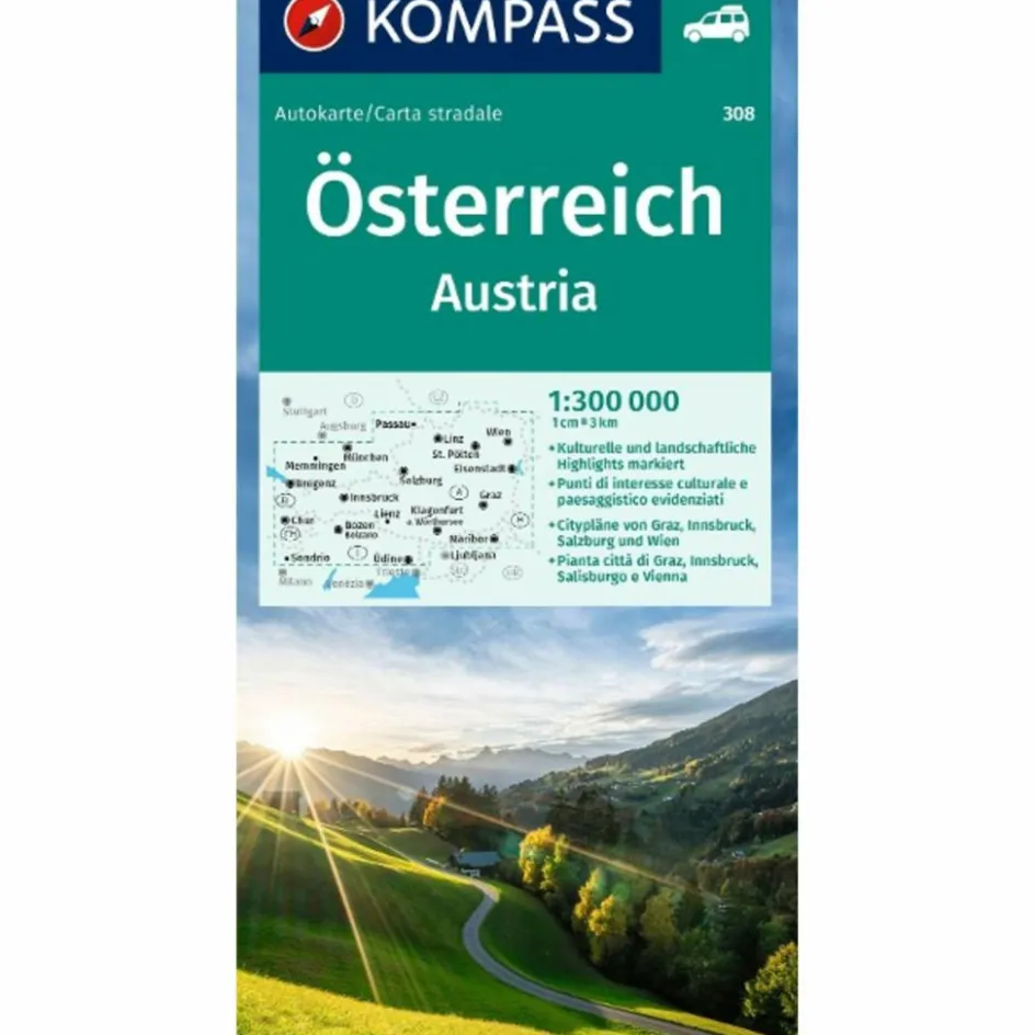 Best KOMPASS AUTOKARTE ÖSTERREICH 1:300.000 Straßenkarten|Straßenkarten