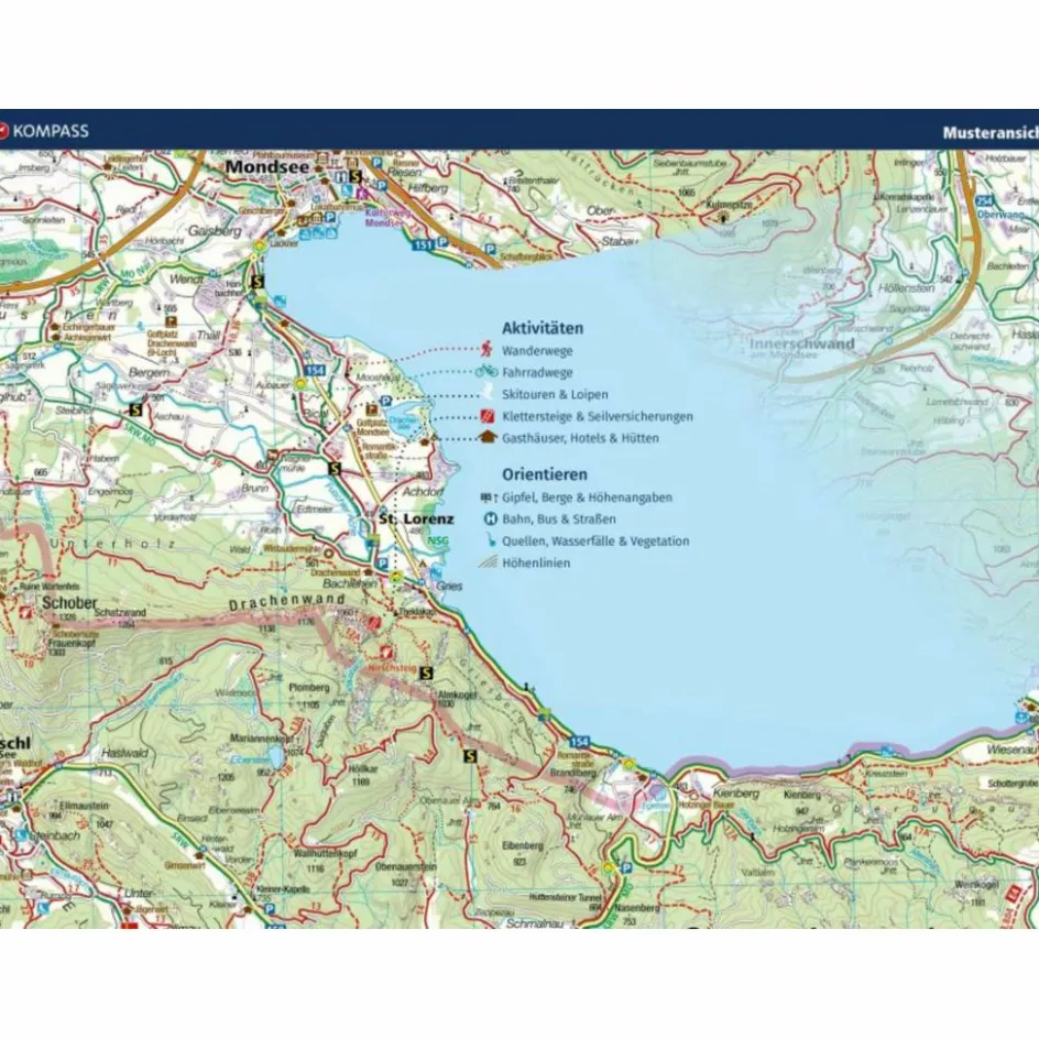 Kompass Wanderkarten sind einfach zu lesen und beinhalten trotzdem alle Informationen, die man für eine perfekte Wandertour, eine Fahrradrunde oder einen Ausflug benötigt. Sie bilden die Natur im passenden Maßstab ab. Unzählige zusätzliche Informationen werden vom Kartografie-Team laufend geprüft und erweitert. Die präzise Kartografie beinhaltet alle offiziellen Wanderwege mit Namen und Wegnummer (wie Fernwege), Fahrradwege (mit Trails), Klettersteige, Gasthäuser und Hütten, Parkplätze, Bus & Bahn, Skitouren und Loipen, Quellen, Badeplätze und vieles mehr. Das macht die Karte ideal zum Entdecken neuer Ziele, zum Planen von Touren und zum Orientieren unterwegs. Ein intuitives Kartenbild der Landschaft entsteht durch die abgebildete Vegetation, Höhenlinien, Felszeichnung sowie der Schummerung (Schattenwurf) der Berge.