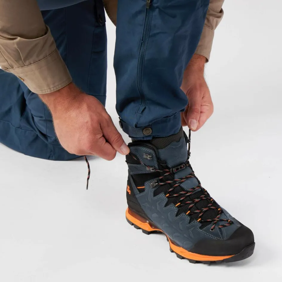 Übrigens verfügt der Stiefel über eine hochwertige Gore-Tex Membran. Diese macht den Stiefel komplett wasserdicht. Ideal, wenn in den Bergen das Wetter umschlägt und der Regen in Sturzbächen vom Himmel fällt, dir aber auch munter gurgelnd den Pfad entgegenplätschert. Trockene Füße sind garantiert und bei trockenem Wetter wird im Stiefel entstehende Feuchtigkeit einfach an die Umgebungsluft abgegeben.