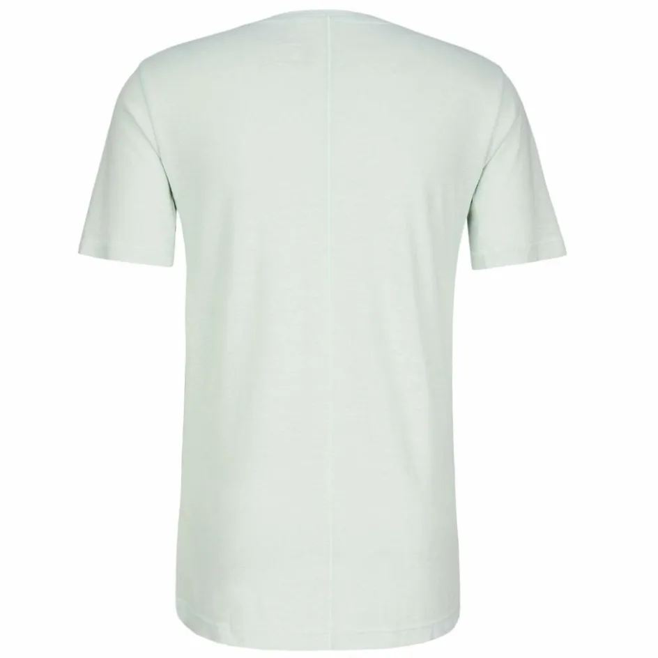 Das T-Shirt besteht aus einer sommerlich leichten Mischung aus Hanf, Polyester und Lyocell. Das Hanf steigert die Strapazierfähigkeit des dünnen Gewebes, außerdem hemmt die Faser auf natürliche Weise die Bildung unangenehmer Gerüche. Der Polyester-Anteil beschleunigt den Abtransport von Körperfeuchtigkeit und dank des Lyocells hat das Shirt einen sehr angenehmen, geschmeidigen Griff.