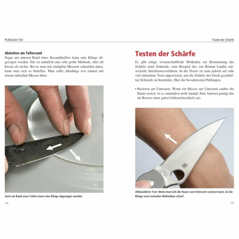 Es beginnt beim einfachen Abziehstahl und reicht über klassische Natursteine bis hin zu modernen Hightech-Apparaten mit Keramik- und Diamant-Schärfern. Der Umgang damit wird detailliert erklärt. So kann nichts mehr schiefgehen! Zudem bekommt der Leser zahlreiche Tipps für die Pflege und Aufbewahrung von Messern. Die Autoren vermitteln dem Leser auch die theoretischen Grundlagen des Messerschärfens, so dass er versteht, warum nicht jedes Schleifgerät bei jedem Messer eingesetzt werden kann. Neben den vielen Fotos werden die wichtigsten Zusammenhänge auch in Grafiken und Illustrationen verdeutlicht. Ein kompakter, aber wertvoller Rat geber für den täglichen Umgang mit Messern.