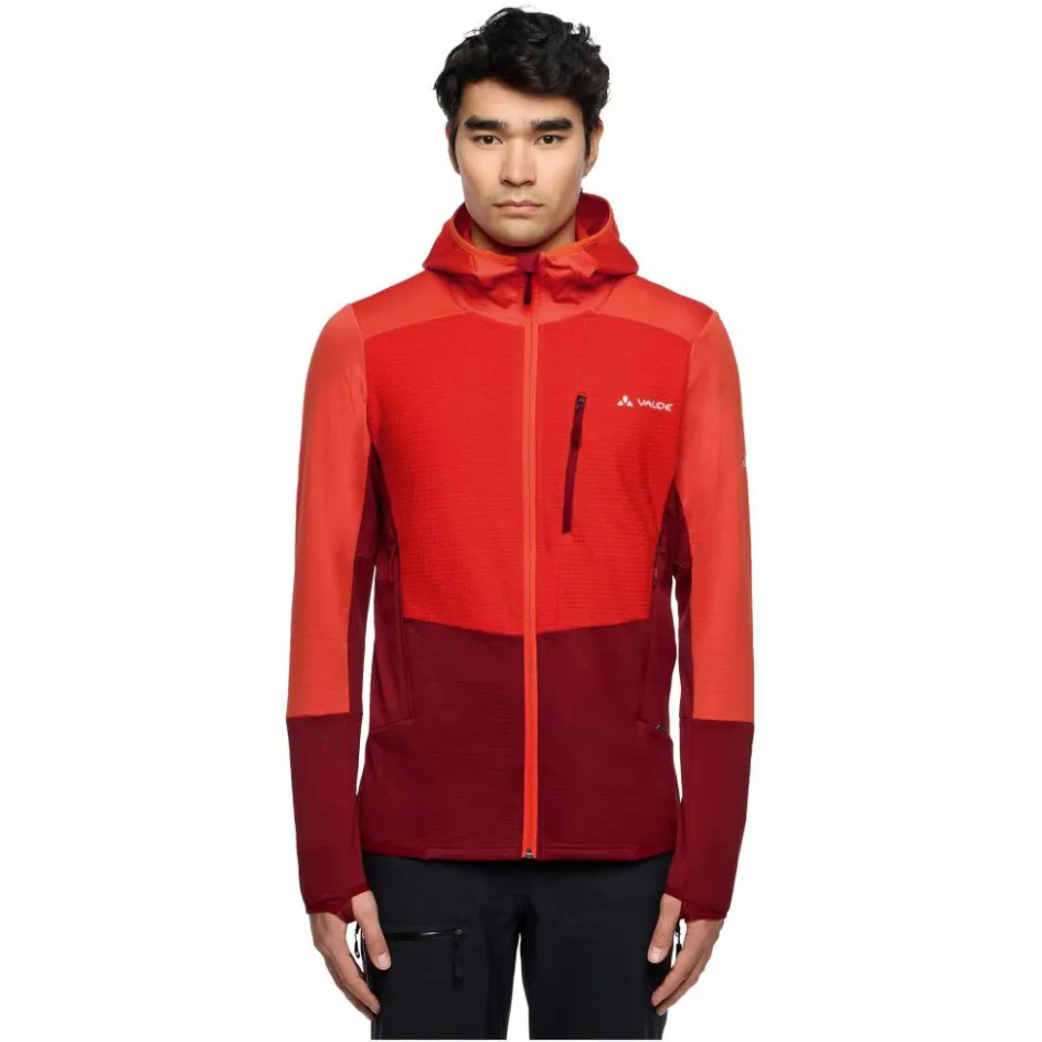 Für einen sicheren und bequemen Sitz sorgen die elastischen Einfassungen an der Kapuze, den Ärmelbündchen und dem Saum. Die Ärmel sind zusätzlich mit Daumenschlaufen ausgestattet, da rutscht also nichts. Die beiden Taschen sitzen ein wenig höher, damit du sie auch mit Rucksack oder Klettergurt noch gut erreichen kannst. Geöffnet können sie für ein wenig Abkühlung sorgen, da sie mit einem Mesh-Futter ausgekleidet sind.