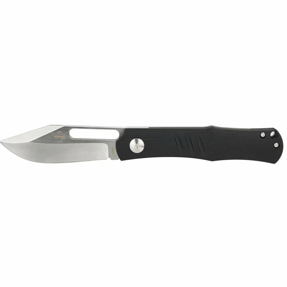 Das vom US-amerikanischen Messermacher Kirk Mayberry designte Sliplock ist ein unverkennbares Einhandmesser. Die wuchtige Klinge aus 4 mm dickem 14C28N Stahl ist in Clippoint-Form gehalten und extrem korrosionsbeständig. Sie kann per Daumen aufgeklappt werden und arretiert dank Frame-Lock-Verriegelung.