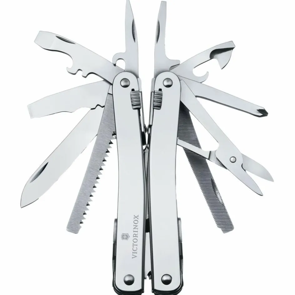 Alle Werkzeugteile des Multitools bestehen aus rostfreiem Inox-Stahl (Werksbezeichnung 1.4110 – in den USA auch bekannt als 440A) mit einer Härte von 56 HRC. Das Material zeichnet sich durch eine mittlere Schnitthaltigkeit aus und lässt sich auch von Anfängern leicht nachschärfen. Mit etwas Übung gelingt es, die Messerklinge auf Rasiermesserschärfe zu schleifen. Victorinox setzt seit den Anfängen auf diesen bewährten Werkzeugstahl.