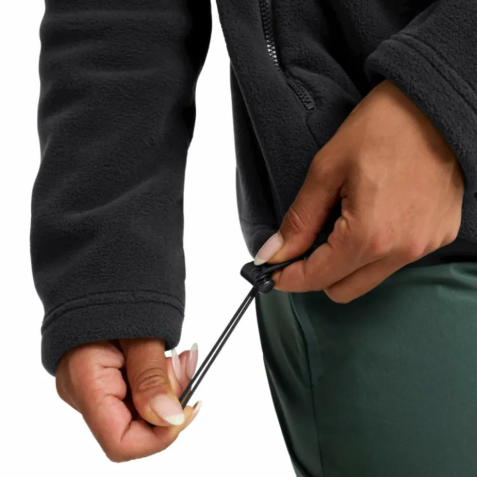 Die kuschlige Fleecejacke besteht aus weichem Recyclingmaterial, welches seinen Komfort auch im Inneren mit seiner sanft aufgerauten Struktur fortsetzt. Das Kunstfasergewebe in 100er Stärke punktet bei aktiven Einsätzen mit einem raschen Feuchtigkeitstransport und einer kurzen Trocknungszeit. Durch den 3in1 Systemreißverschluss und Verbindungsschlaufen lässt sich das Fleece ganz einfach mit einer passenden wetterfesten Außenjacke kombinieren. Abgerundet wird der vielseitige Klassiker durch einen gemütlichen Stehkragen und zwei platzspendende RV-Taschen