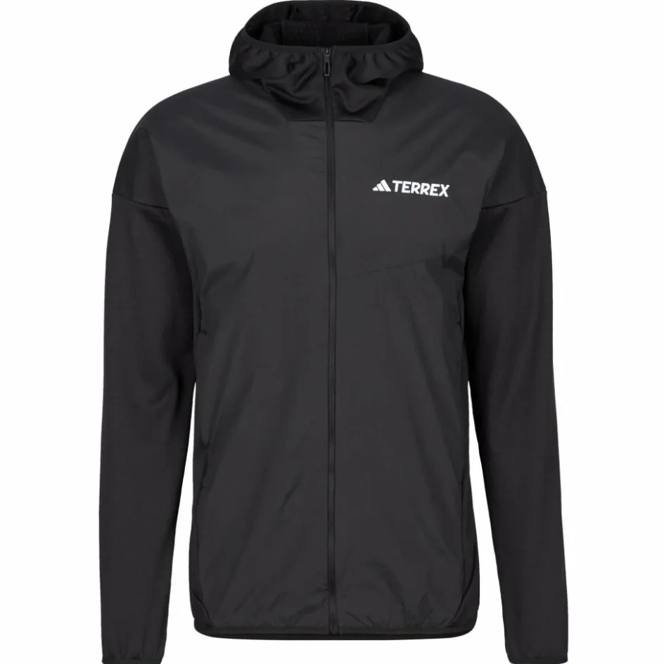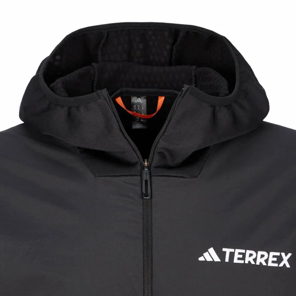 Komplizierter Name, aber viel Komfort: Die Terrex Xperior Climawarm + Wind Light Fleece Hooded Jacket punktet mit hochelastischem, feuchtigkeitsleitendem Hauptmaterial und winddichter Frontseite.