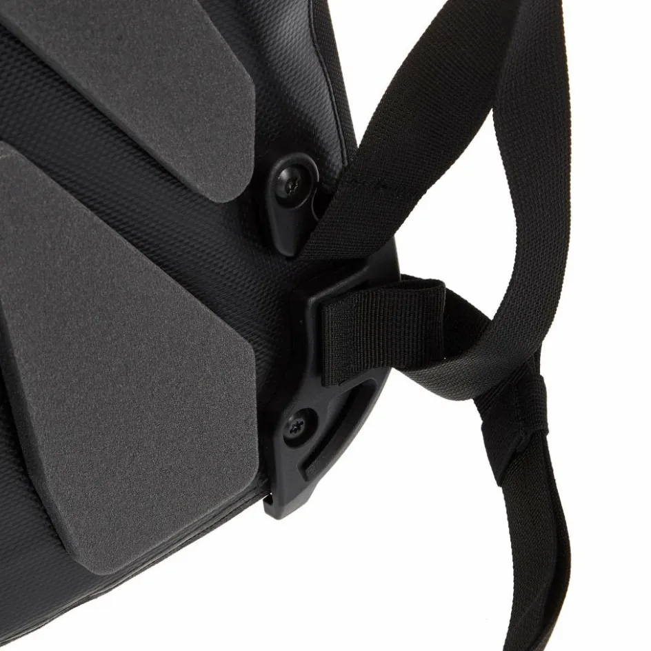 Das gut belüftete Tragesystem besteht aus einzelnen Rückenpolstern. Die Schultergurte sind jetzt noch besser ergonomisch vorgeformt und der abnehmbare Bauchgurt sorgt für einen rutschfesten Sitz beim Radeln.