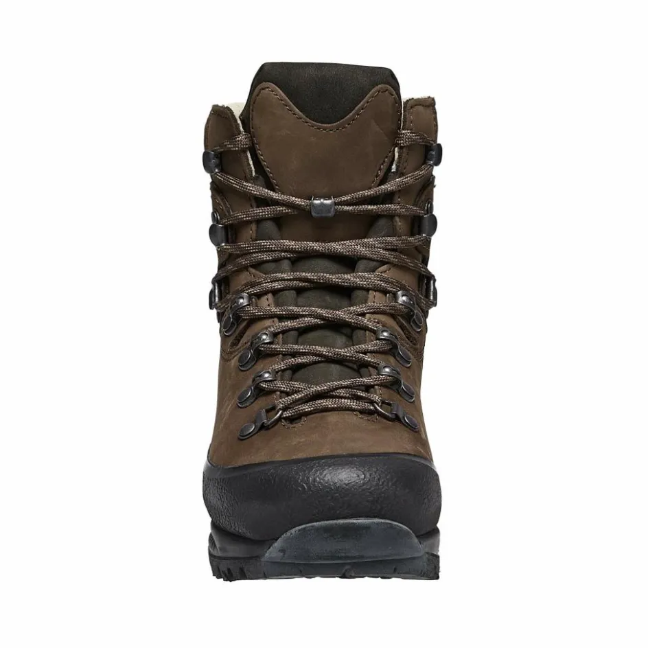 Die Zunge ist mit feuchtigkeitsleitendem Synthetikgewebe unterfüttert. Eine Kombination, die für angenehm temperierte Füße sorgt. Der asymmetrisch gearbeitete Schaft passt sich optimal an die Form der Wade an und bietet ein hohes Maß an Bewegungsfreiheit. Außerdem: Das kräftige, zum Einsatz kommende Nubukleder bekommt so schnell nichts klein! Felskanten, dorniges Gestrüpp am Wegesrand, alles kein Problem für den mehr als robusten Trekkingstiefel!