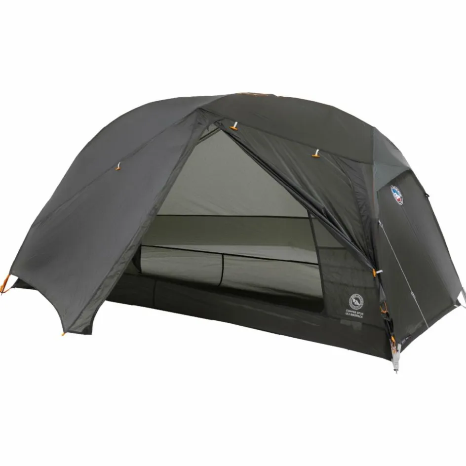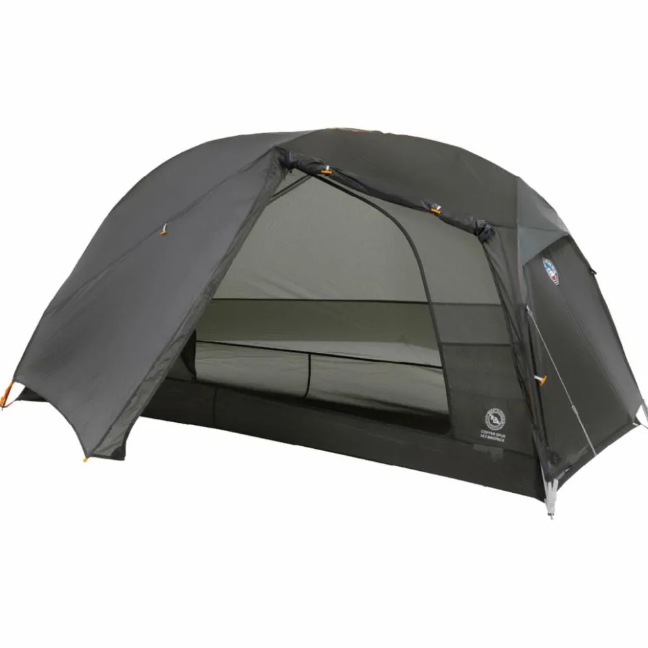 Das von Big Agnes entwickelte Hyperbead-Gewebe ist rund 6 % leichter als vergleichbare Materialien und dabei besonders reißfest. Es bleibt dauerhaft wasserabweisend und kommt ohne PFAS-haltige Imprägnierung aus. Große Mesh-Flächen und ein Hochlüfter sorgen für gutes Klima im Innenzelt, während die fast senkrechten Wände eine komfortable Sitzhöhe bieten. Der Eingang lässt sich komplett öffnen und ermöglicht einen 180°-Panoramablick.
