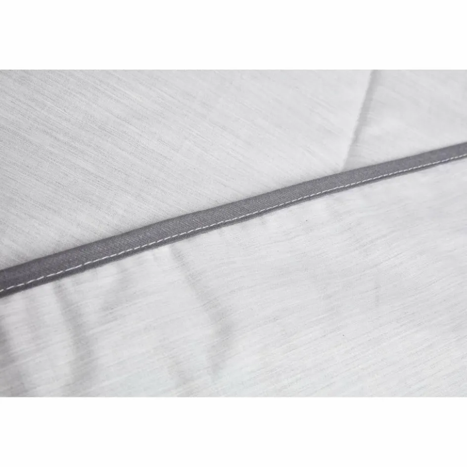 Die Decke besitzt einen weichen Baumwollbezug und ist mit einer leichten Isolation aus Celliant ausgestattet. Dieses technische Material hat die Eigenschaft, die Durchblutung zu fördern und die Sauerstoffversorgung der Zellen zu verbessern. Ermöglicht wird dies durch die Eigenschaft der Faser, abgegebene Körperwärme zu reflektieren und sie in Infrarotenergie umzuwandeln. Die Füllung besteht aus 30 % recycelten Fasern.