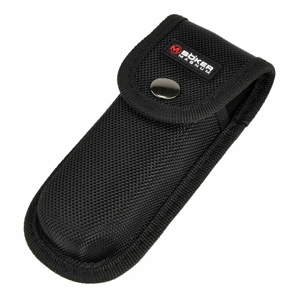 Der Griff besteht aus leichtem Nylon, das mit TPE überzogen ist. Dadurch liegt das Messer selbst bei Nässe rutschfest in der Hand. Am Griffende kann eine Kordel durch die Fangriemenöse gezogen werden, um das Messer zu individualisieren. Der Transport erfolgt entweder direkt in der Hosentasche oder im mitgelieferten Holster, das du waagerecht oder senkrecht am Gürtel befestigen kannst.