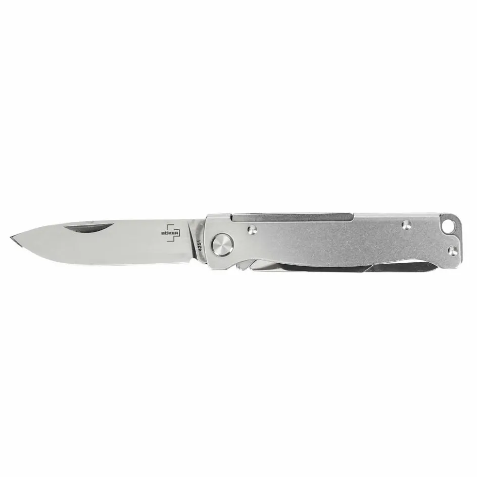 Die Griffschalen dieses schönen Taschenmessers bestehen aus Edelstahl und sind mit einem Stonewash-Finish versehen. Sie ergänzen optisch hervorragend die Klinge und Schere aus poliertem Sandvik-12C27-Stahl. Dieser schwedische Stahl ist als Messerklinge sehr beliebt und zeichnet sich durch hohe Korrosionsbeständigkeit, Schärfe, Schärfbarkeit und Zähigkeit aus. Das Atlas Multi SW eignet sich daher ideal für den täglichen Einsatz.