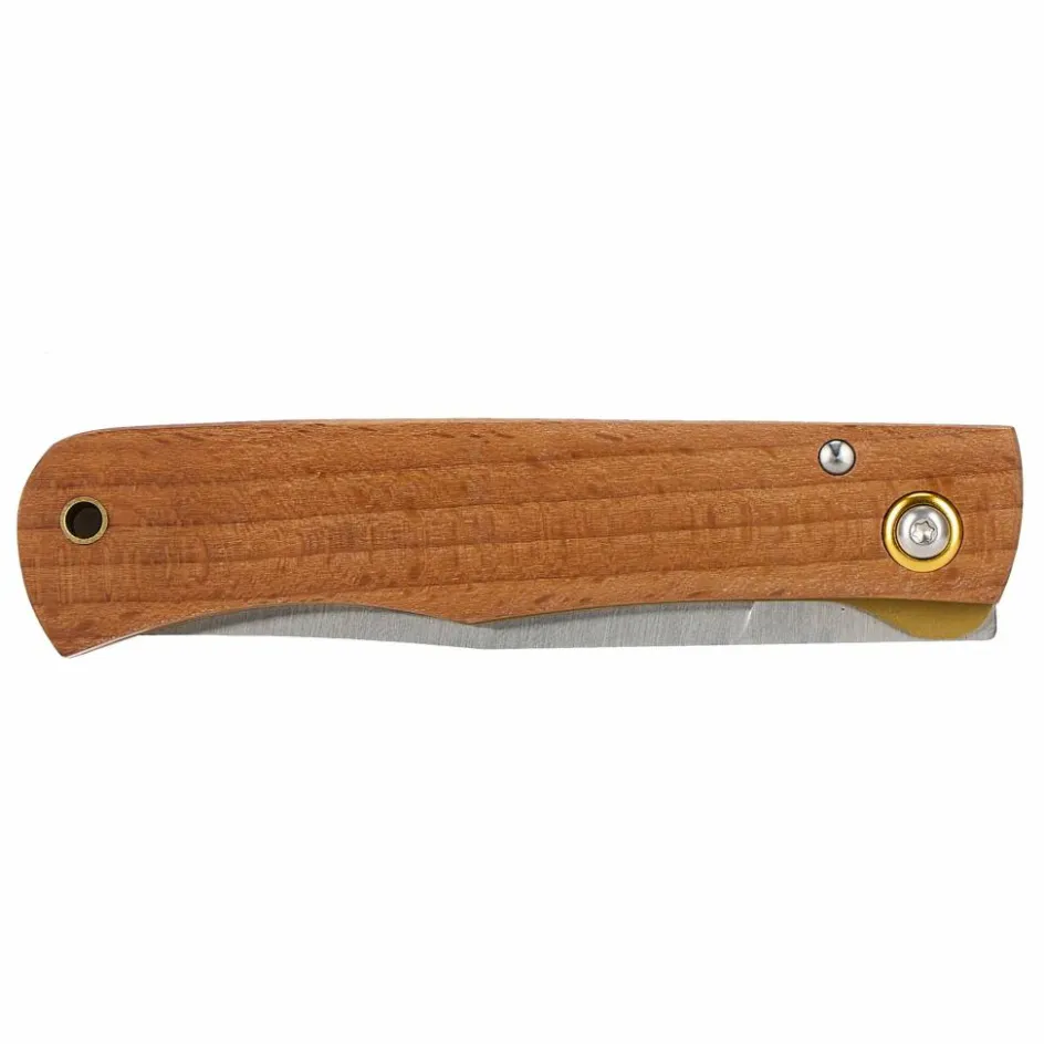 Das Rusticus ist ein echter Geheimtipp, denn hier wird viel Messer für einen kleinen Preis geboten. Die schlanke Klinge aus einfachem 420er Stahl wird per Nagelhau geöffnet und arretiert dank Linerlock automatisch nach dem Aufklappen. Der Griff aus Rotbuchenholz besitzt am Griffende eine Fangriemenöse, an die du eine Kordel knoten kannst. Als Taschenmesser für den Alltag konzipiert, erfüllt das Rusticus leichte Aufgaben zuverlässig. Und sollte die Klinge einmal stumpf werden, lässt sie sich unkompliziert nachschärfen.