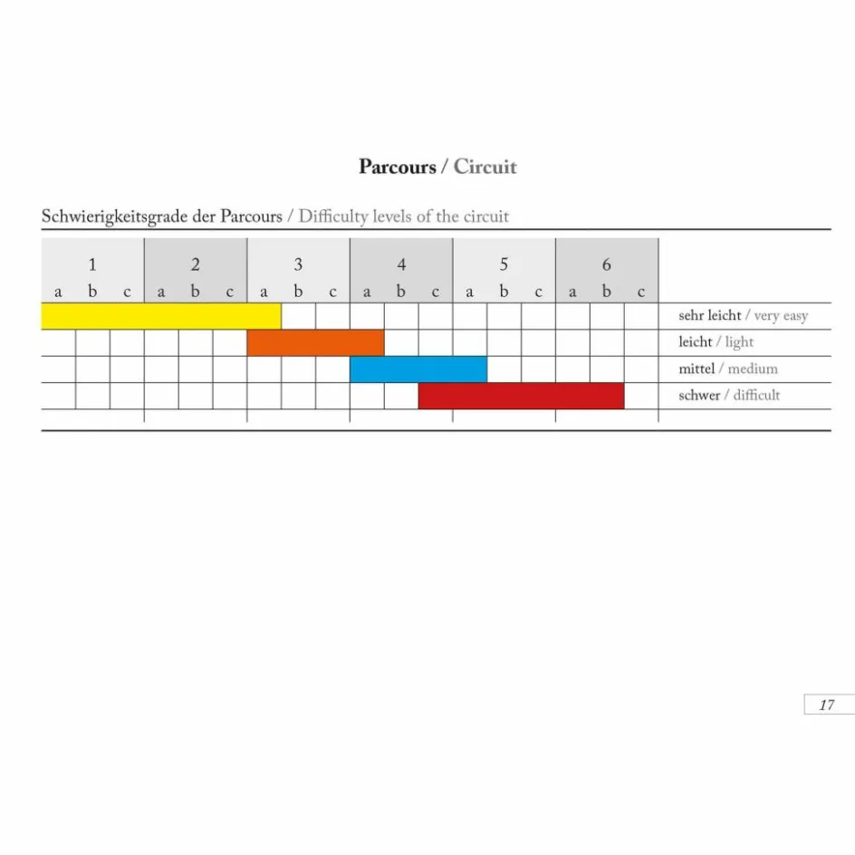 - Gesamtübersicht aller Parcoursboulder und zusätzlicher Probleme des jeweiligen Sektors mit Blockfotos und