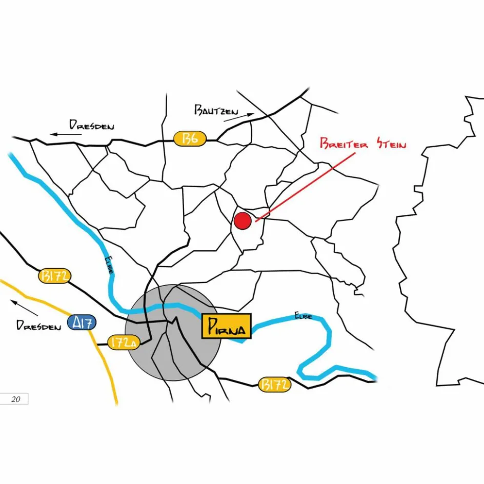Der Breite Stein liegt etwa 20 Kilometer östlich von Dresden. Fester Fels, klasse Linien, beste Blöcke, sonnenexponiert: das ist der Breite Stein. Ein idealer Ort zum Parcoursbouldern – finden bestimmt nicht nur die Autoren! In drei Sektoren erwarten den