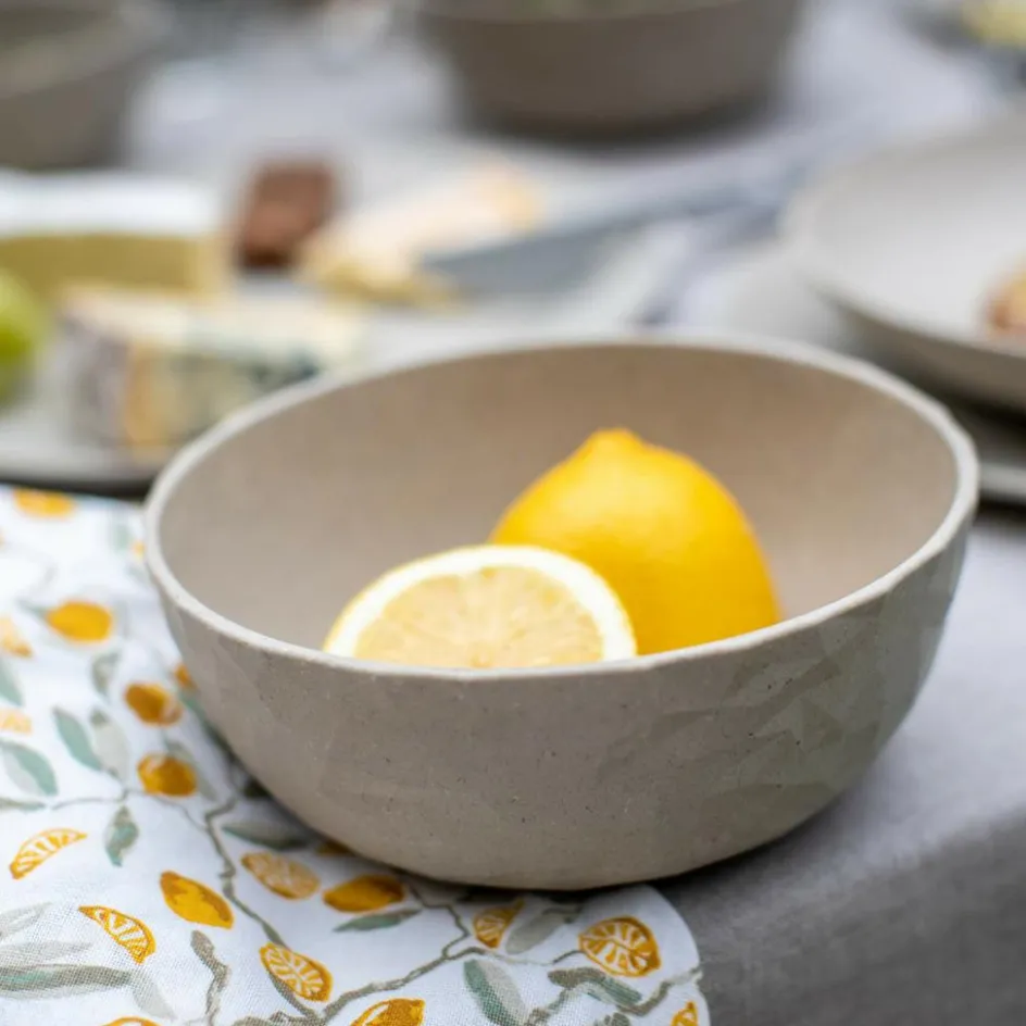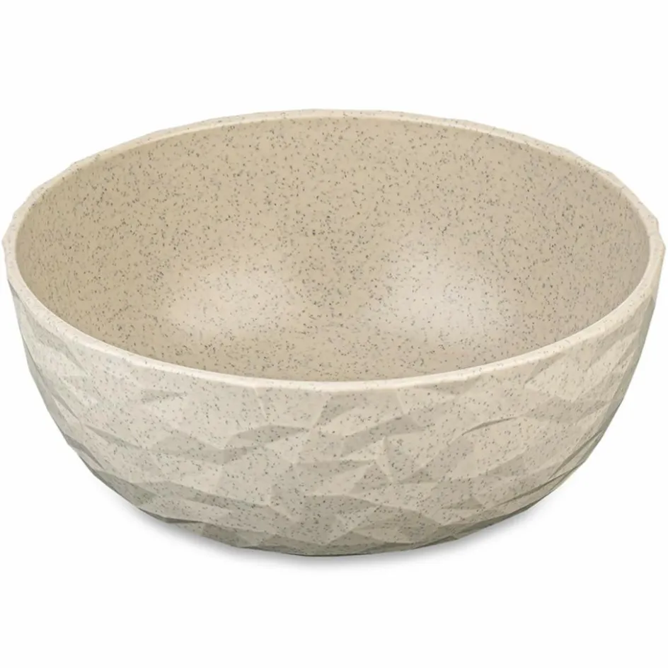Dieses Set besteht aus vier Müslischalen mit je 16,2 cm Durchmesser. Hergestellt aus schwerem, bruchsicherem und biobasiertem Kunststoff in facettiertem Design.