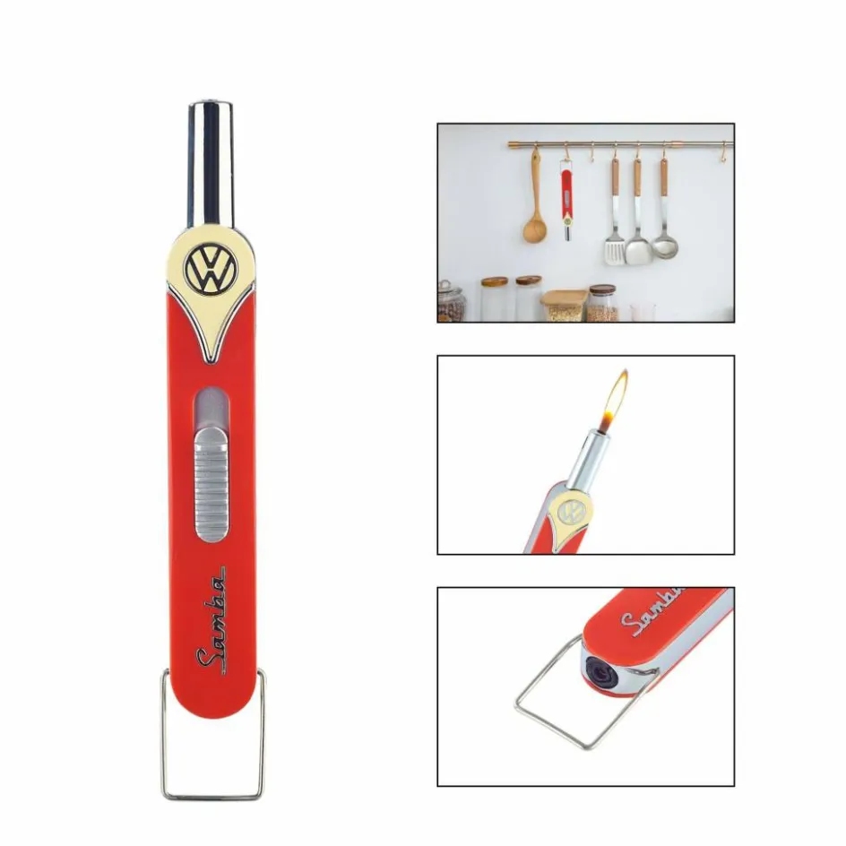 Das darf in keinem VW-Bus fehlen! Das Bulli-Stabfeuerzeug im VW T1 Design ist mit einem Aufhänger und einer Sicherheitssperre versehen und zündet zuverlässig Kerzen und Gasgrills an.