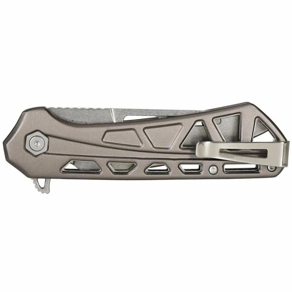 Das taktisch inspirierte Trace OPS überzeugt mit seinem leichten, skelettierten Aluminiumgriff und der ebenfalls skelettierten, silberfarbenen Klinge in Tanto-Form.