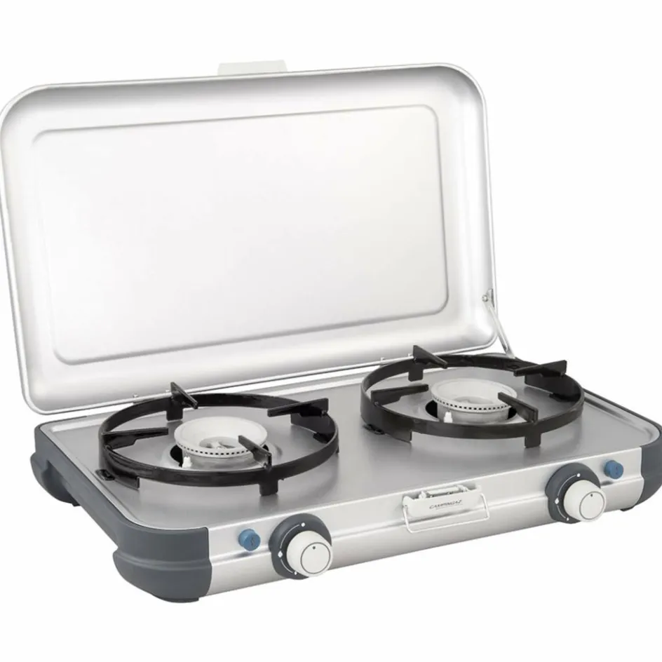 Der zweiflammige Camping Kitchen 2 CV PZ Gaskocher ist perfekt geeignet für Urlaube auf dem Campingplatz. Er ist kompakt im Packmaß, schnell aufgebaut und leicht zu säubern.