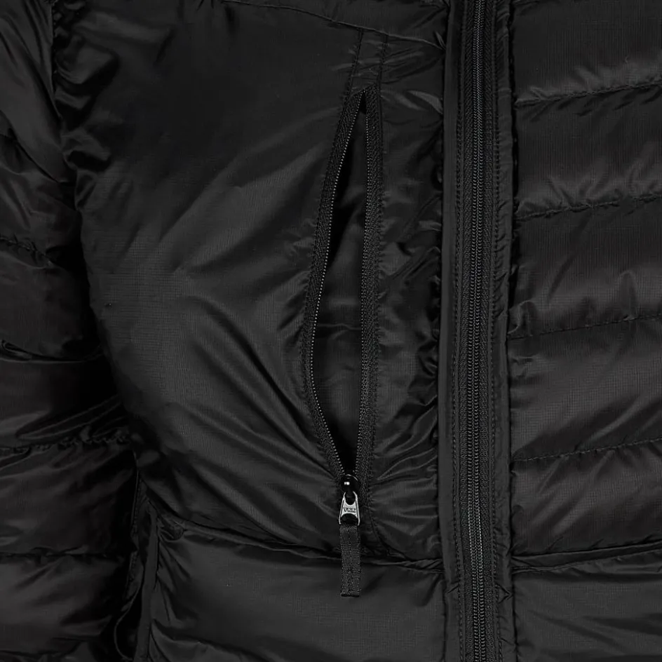 Als High-End Daunenjacke kommt der Cerium Hoody mit einer clever angeordneten Füllung nach Down Composite Mapping Technologie daher. Dies bedeutet, dass sich die hochwertige Gänsedaune dort befindet, wo du am meisten Wärme benötigst: am Rumpf, an Ärmeln und Kapuze. Gleichzeitig sind die Bereiche der Achseln, des Kinns, der Ärmelbündchen und der Schultern sehr feuchtigkeits- und druckanfällig. Hier wird daher Coreloft Kunstfaser eingesetzt, die weniger empfindlich als Daune ist und im feuchten Zustand noch wärmt.