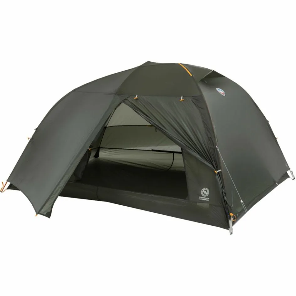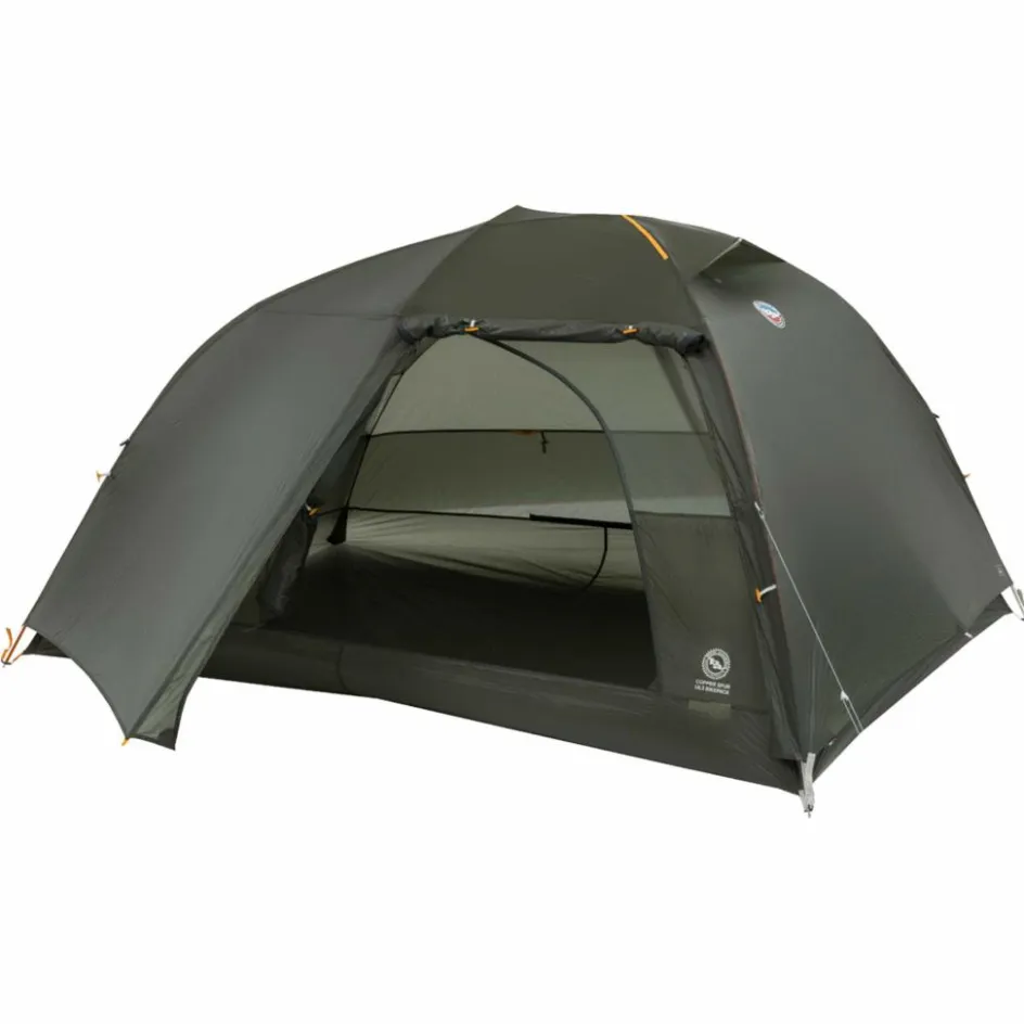 Das von Big Agnes entwickelte Hyperbead-Gewebe ist rund 6 % leichter als vergleichbare Materialien und dabei besonders reißfest. Es bleibt dauerhaft wasserabweisend und kommt ohne PFAS-haltige Imprägnierung aus. Große Mesh-Flächen und ein Hochlüfter sorgen für gutes Klima im Innenzelt, während die fast senkrechten Wände eine komfortable Sitzhöhe bieten. Der Eingang lässt sich komplett öffnen und ermöglicht einen 180°-Panoramablick.