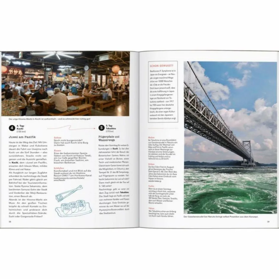 30 individuelle Entdeckungstouren haben sie speziell für dieses Buch zusammengestellt, darunter eine Radtour, die über insgesamt 6 Inseln führt, eine Fahrt über Shikoku, die kleinste japanische Hauptinsel, oder eine Stadtwanderung am Kamogawa-Kanal entlang, bei der man in das authentische Kyoto eintaucht. Stimmungsvolle Bilder und handfeste praktische Tipps runden das inspirierende Japan-Paket ab.