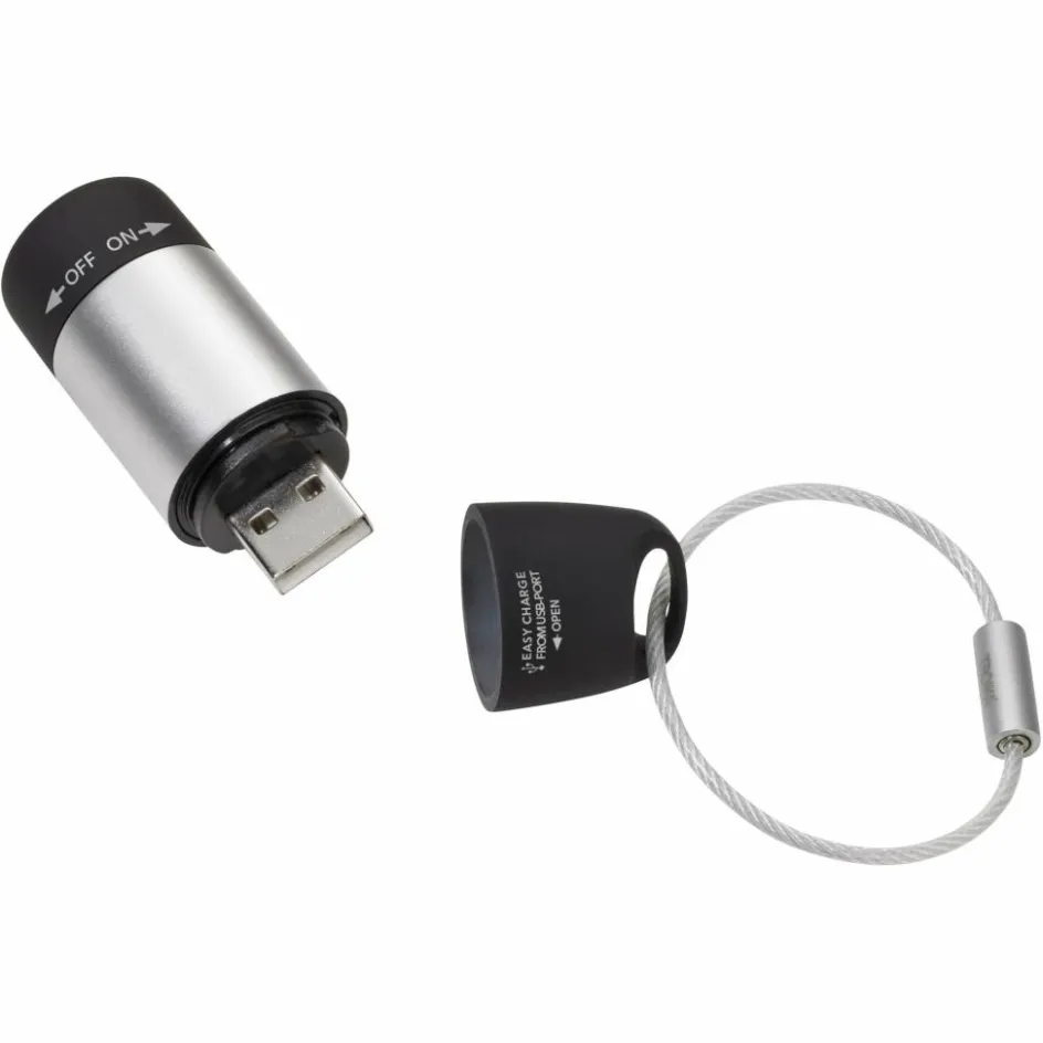 Hinter der Endkappe versteckt sich ein USB-A-Anschluss, mit dem du den eingebauten Akku an jedem USB-Anschluss wiederaufladen kannst. Mit Überladungsschutz und Tiefentladungsschutz.