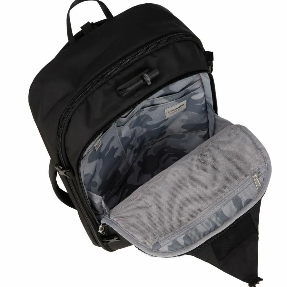 Die Marke mit der Schildkröte im Logo macht sich bereits seit vielen Jahren für den Schutz der Meeresschildkröte stark. Dazu gehört zum einen die Vermeidung von Plastikmüll, weshalb das EXP45 Carry-on Travel Pack aus recycelten Plastikflaschen hergestellt ist. Zum anderen gibt Pacsafe jährlich Fördergelder an Non-Profit-Organisationen, die sich der Sicherheit und dem Erhalt der Tiere und ihrer Lebensräume verschrieben haben (Pacsafe Turtle Fund).