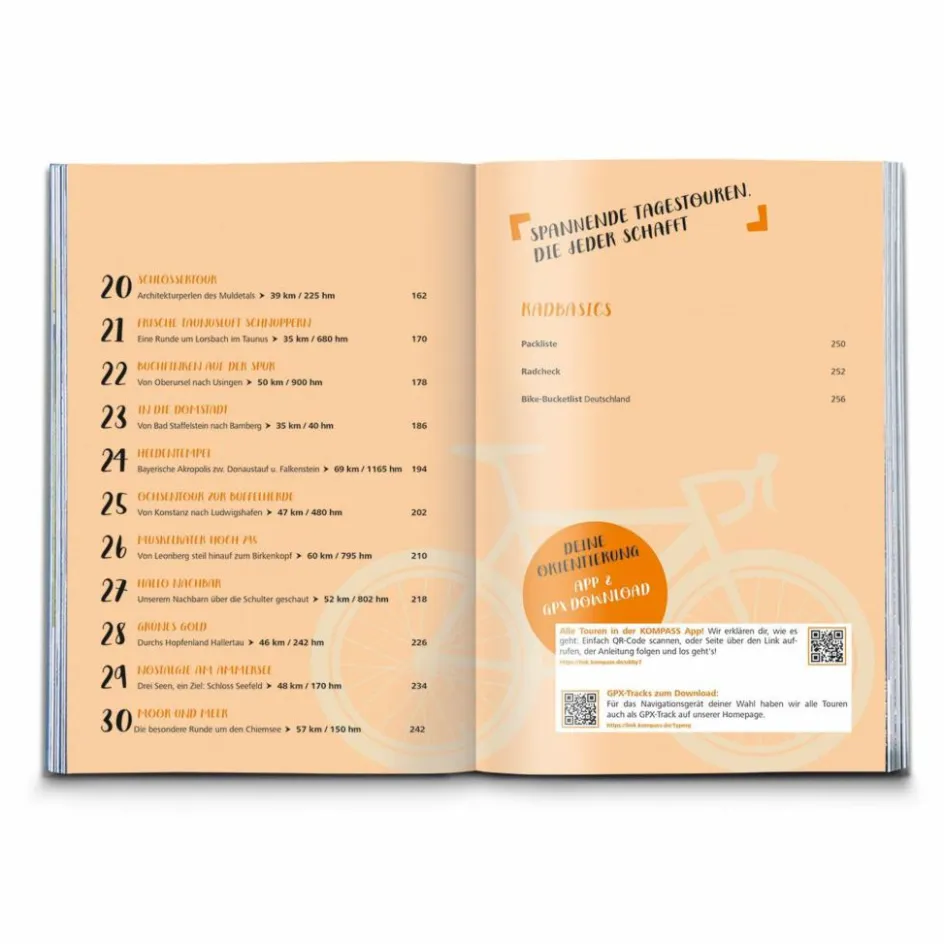 Hier ist für jeden die passende Radtour dabei: Die über ganz Deutschland verteilten Tagestouren führen zu landschaftlichen und kulturellen Highlights und bedienen sich dabei sowohl der beliebtesten Radwege als auch unbekannterer Routen. Bei jeder Tour finden sich Einkehrtipps, Anreiseinfos, Höhenprofil und Tourenkarte. Mit App und GPX-Download verbindet der Radtourenguide Inspiration auf dem Sofa mit einfacher Navigation vor Ort. Mit unserem Radtourenführer entdeckst du Deutschland neu aus ungewöhnlichen Perspektiven und mit spannenden Insights. Da bleibt nur eines: aufsatteln und losradeln!