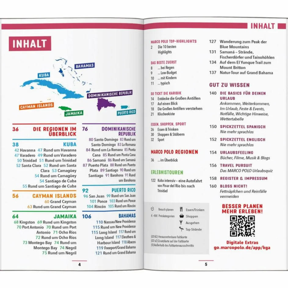 Dein MARCO POLO Reiseführer ist der ideale Begleiter, wenn du die Großen Antillen wirklich kennenlernen willst. Erkunde die Top-Spots in Kuba, Jamaika, Puerto Rico und der Dominikanischen Republik abseits der Touristenpfade. Schwimme auf den Bahamas mit Schweinen um die Wette oder schau dir auf den Cayman Islands das Meer von unten an. Mit den Empfehlungen in deinem MARCO POLO Reiseführer erlebst du unvergessliche Momente und entdeckst die Karibik in deinem eigenen Rhythmus!