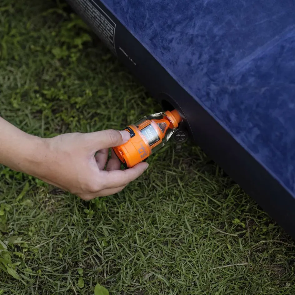 Die Max Pump 3 ist eine elektrische Luftpumpe mit stufenlos dimmbarer Zeltlaternenfunktion. Mit einer Pumpleistung von 500 l pro Minute sind auch große Schlafmatten schnell aufgeblasen.