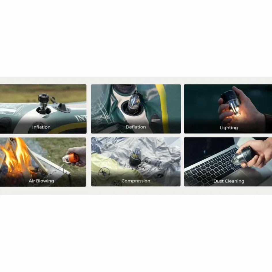 Die Pumpe verfügt über einen klaren, durchsichtigen und abnehmbaren Lampenschirm. Dank der integrierten Laternenfunktion kannst du dein Zelt oder deinen Tisch hervorragend ausleuchten. Die Lampe besitzt eine stufenlose Dimmfunktion von 10 bis 300 Lumen, sodass dir vom Leselicht bis zum gemütlichen Umgebungslicht immer die passende Lichtstärke zur Verfügung steht. Die Leuchtdauer variiert je nach Modus zwischen 4 Stunden bei 300 Lumen und bis zu 400 Stunden bei 10 Lumen.