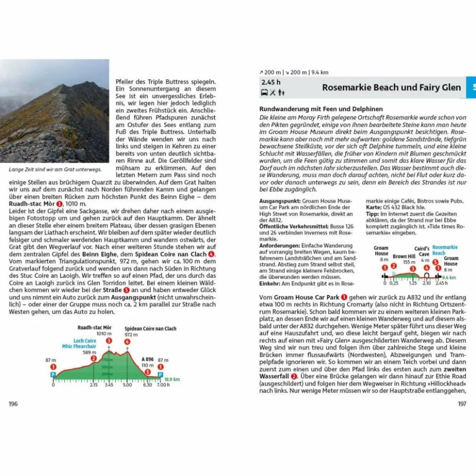 Die Wanderungen lassen Schottland so richtig erleben. Die Spannweite reicht vom gemütlichen Strandspaziergang bis zur hochalpinen Gratüberschreitung. Klassische Wanderziele in den Highlands sind ebenso beschrieben wie Mehrtagestouren abseits der Zivilisation oder kürzere Wanderungen in der Nähe von Städten und an der Küste die lassen sich in jeden Schottland-Urlaub einbauen.