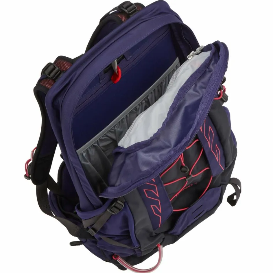 An den Fächern des Tempest hat sich nicht viel verändert – gut so! Denn der Tagesrucksack verfügt weiterhin über die durchdachte Raumaufteilung, die sich schon bei seinem Vorgänger auf zahllosen Wanderkilometern bewährt hat. Für Kleinigkeiten wie das Handy gibt es ein RV-Fach im Hauptfach. Der elastische Kordelzug auf der Front eignet sich ideal, um deine nasse Regenjacke zu befestigen, während die seitlichen Steckfächer Platz für zwei Trinkflaschen bieten. Mithilfe der RV-Fächer auf den Hüftflossen sind Müsliriegel, Taschentücher und Co. immer schnell zur Hand.