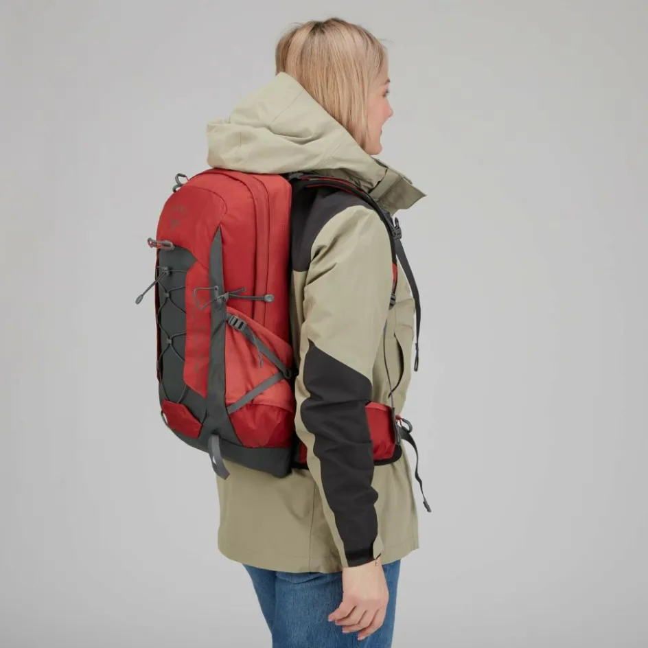 Ob bei steilen Anstiegen oder an warmen Sommertagen: Für optimales Klima ist der Kontaktrücken mit horizontalen Belüftungskanälen ausgestattet. Anstelle eines herkömmlichen Rückenpolsters kommt dabei gestanzter EVA-Schaum zum Einsatz, der für eine gleichmäßige Gewichtsverteilung sorgt und zum geringen Gewicht des Tagesrucksacks beiträgt. Das Tragesystem des Tempest verfügt zudem über eine leichte und gleichzeitig robuste HDPE-Rückenplatte, welche die Lastenübertragung und Packstabilität verbessert. Elastische BioStretch Hüft- und Schultergurte unterstützen dich bei deinen Bewegungen und tragen sich dank luftigem Mesh und Perforationen das ganze Jahr über angenehm.