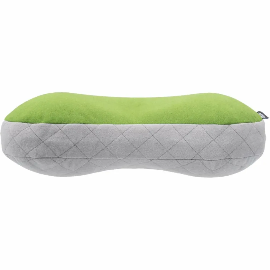 Im Inneren des Kissens befindet sich ein aufblasbarer Luftkern, der von einer weichen Kissenhülle mit Polyesterfüllung umschlossen wird. Über ein flaches Ventil lässt sich der Luftkern zügig aufblasen. Ein integriertes Rückschlagventil sorgt dafür, dass du den Härtegrad einfach regulieren kannst.