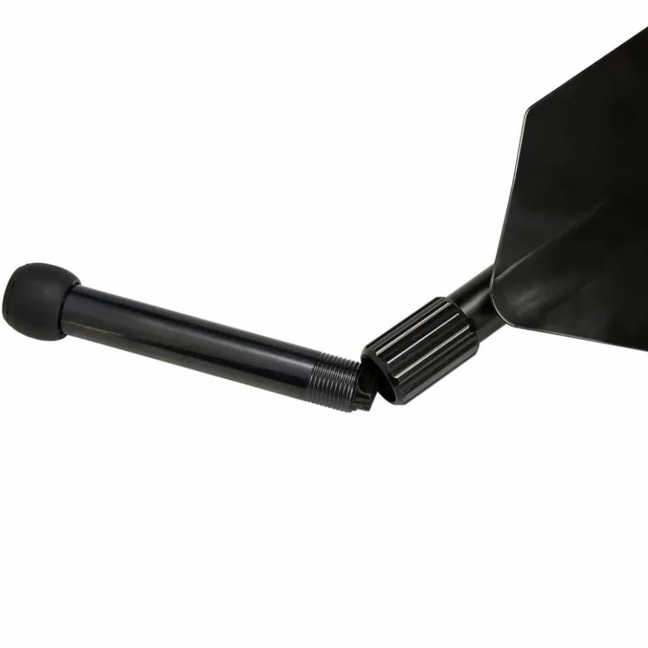 Das Schaufelblatt kann im eingeklappten Zustand für den Transport, im 90 Grad Winkel als Hacke oder ausgeklappt zum Graben fixiert werden. Der Knauf verhinder ein Abrutschen der Hand vom Griff und ist gleichzeitig der Handgriff der Säge. Diese kann vom Spatengriff abgeschraubt werden und Unterstützt dich beim Durchtrennen von Wurzeln oder beim Sägen von Feuerholz. Zum Transport kann das Schaufelblatt flach an den Griff geklappt werden.
