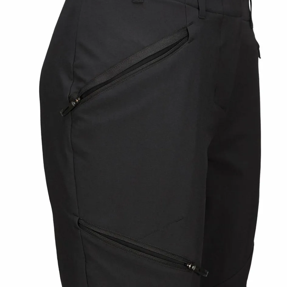 Die Innenseite ist leicht aufgebürstet und spendet dadurch mehr Wärme. So eignet sich die Hose optimal für ambitionierte Berg- und Trekkingtouren an kühleren Tagen. Außerdem liegt sie durch die aufgeraute Struktur besonders angenehm auf der Haut. Die Taschen sind mit einem weichen Microfleece-Futter an der äußeren Seite ausgestattet und bieten kalten Händen einen gemütlichen Platz zum Aufwärmen. Die Beinabschlüsse lassen sich in der Weite regulieren und somit an verschiedenes Schuhwek anpassen. Der Hosenbund ist im hinteren Teil elastisch und liegt dadurch gut am Rücken an.
